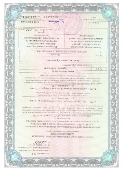 - Места осуществления образовательной деятельности по дополнительным образовательным программам: не осуществляется